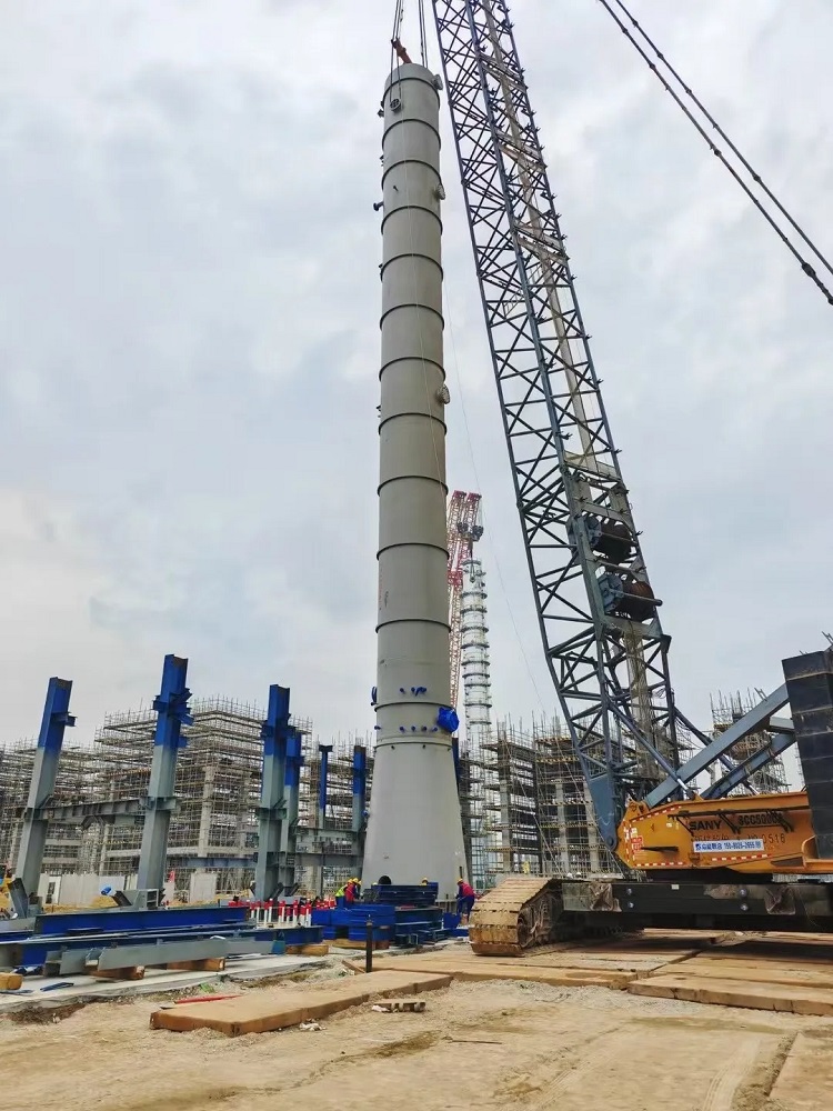 专业化施工博鱼手机站·官方版在线 助力中化三建大塔装置精准落位